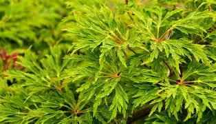 Finely dissected and lacy emerald green leaves emerge a light green before maturing to a darker green. Showy fall color in shades of yellow, orange and red. Its graceful weeping habit gives off a waterfall like appearance.