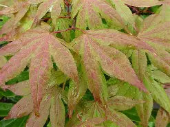 This Japanese maple variety showcases a unique lace-like leaf pattern and is known for its upright, spreading habit. It thrives in hardiness zones 5 through 8 and prefers temperatures between 60-75°F. In the fall, its leaves transform into a stunning mix of orange and red hues. Despite its delicate appearance, it exhibits moderate deer resistance. The plant requires well-drained, slightly acidic soil for optimal growth and can reach a mature height of 10-15 feet. The compact, rounded shape makes it an excellent choice for smaller gardens and ornamental landscapes.