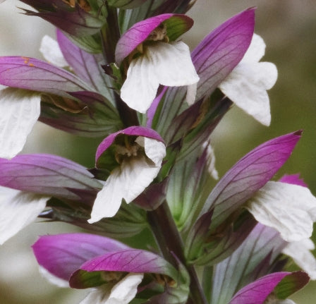 Acanthus mollis 'Morning Candle' is a striking perennial known for its tall, elegant flowering spikes and lush green foliage. This plant exhibits an upright habit and thrives in USDA hardiness zones 7 through 10, making it suitable for a variety of garden climates. It prefers temperatures between 60-80°F and displays white and purple blooms that add a touch of sophistication to any landscape. 'Morning Candle' can reach a height of up to 4 feet, creating a strong visual statement in the garden. While not entirely deer-resistant, its spiny leaves often deter browsing. This hardy yet graceful plant is perfect for adding vertical interest and texture to mixed borders and shaded areas.