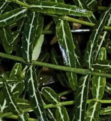 Prominent white veins stand out on the narrow, deep green leaves for an unusual appearance on this strong-growing groundcover. Dark green foliage with silvery white veins. Wolong is a mat-forming groundcover, but will not become invasive. Perfect for large area coverage, hillsides and areas not easily accessed for care.