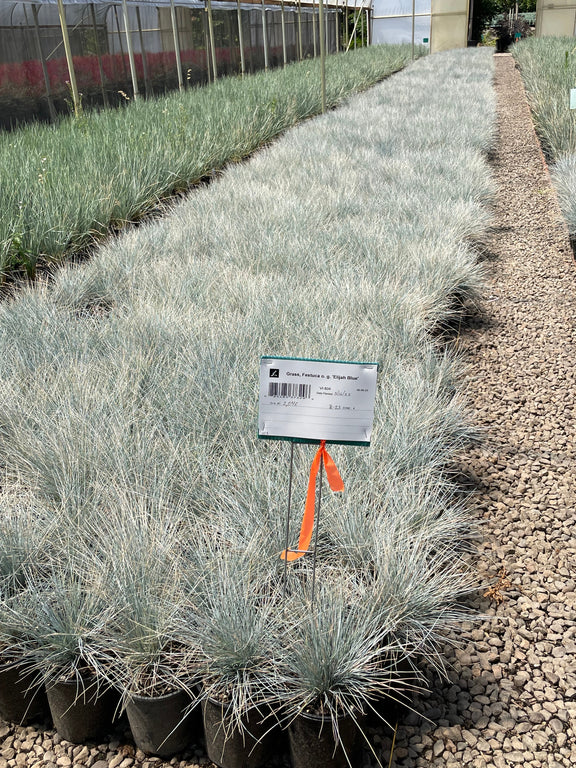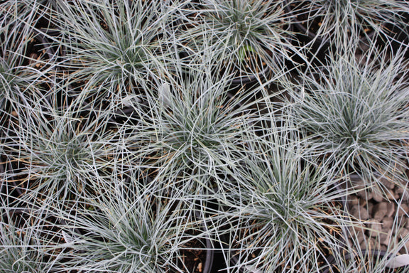 This compact, ornamental grass boasts a dense, mounded habit with finely textured, blue-gray foliage that adds stunning color contrast to any landscape. Hardy in zones 4-8, it thrives in cooler temperatures but performs well in full sun with well-drained, moderately fertile soil. It matures to a height of 10-12 inches, maintaining its tidy shape throughout the growing season. Though it may develop wheat-like flower spikes in late spring or early summer, they are often trimmed to preserve the foliage's neat aesthetic. This grass does not offer notable fall color but retains its striking blue hue year-round. Deer-resistant and drought-tolerant once established, it makes an excellent choice for borders, rock gardens, or container planting.