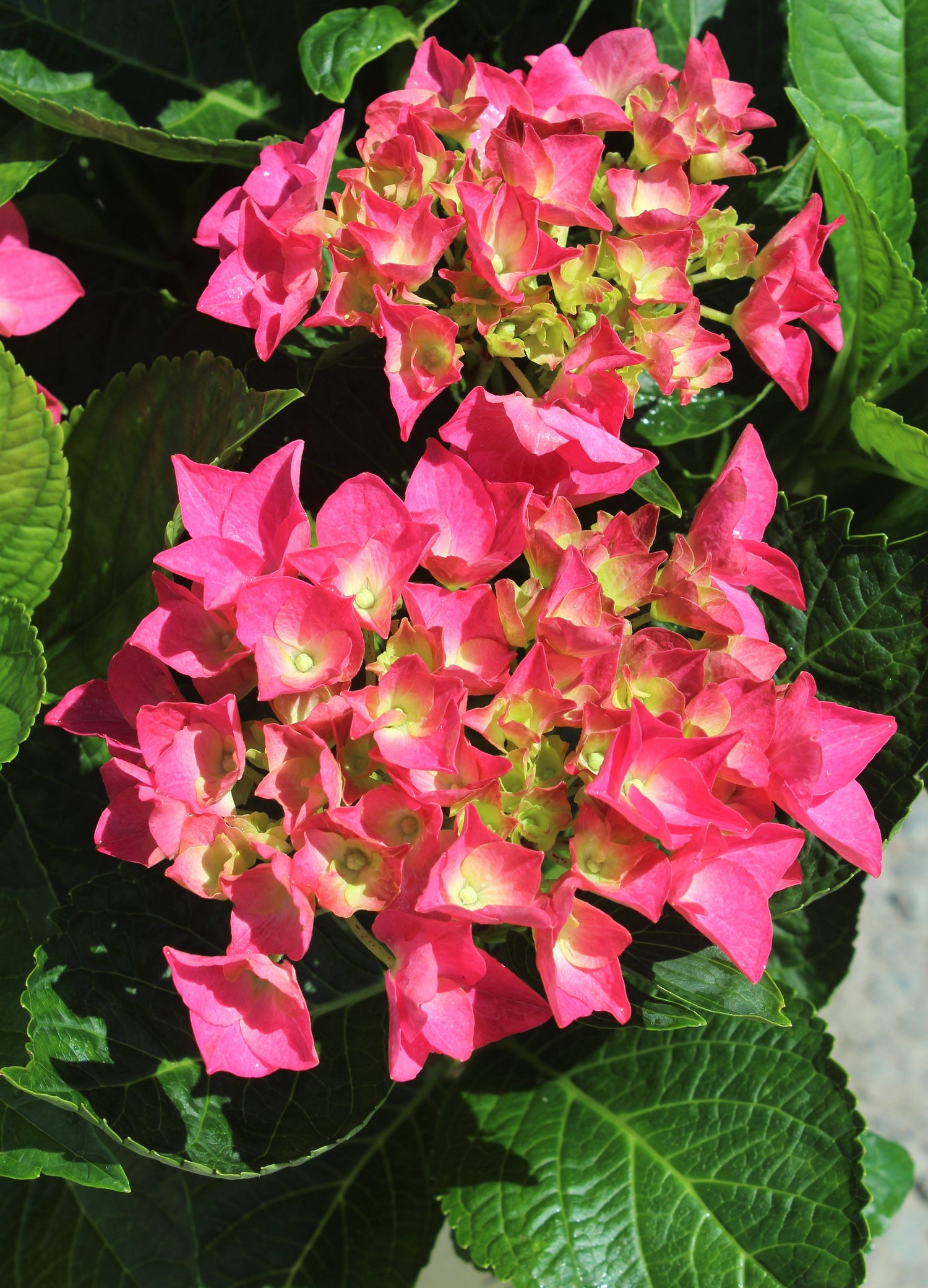 Attractive green colored buds open to deep pink blooms on sturdy stems. Color may vary with soil pH. It's compact habit makes for an excellent container plant.