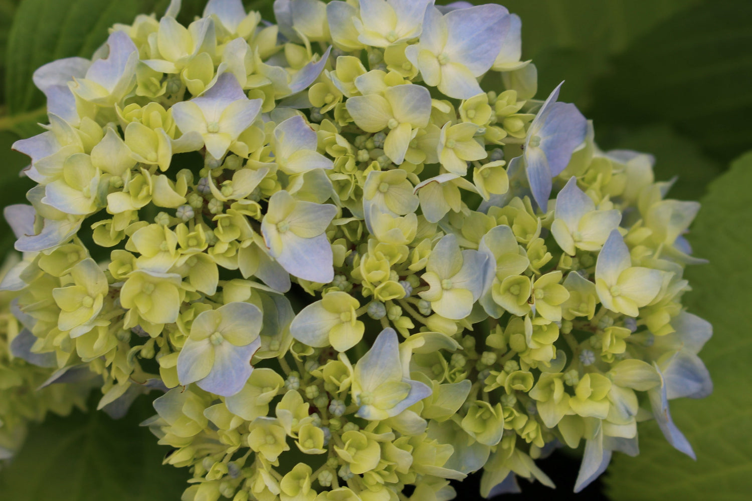 Deciduous, rounded shrub to about 4 to 6 feet high and wide. Hardy to about -10 degrees F. Best in partial shade.Huge early blooming flowers start out cream with a blue margin then turn solid blue large mophead.
