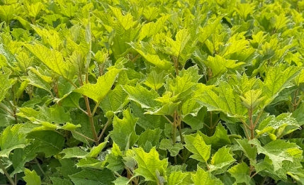 Fast growing, mounding, deciduous shrub to about 8 to 10 feet tall and wide. Hardy to about -20 degrees F. partial shade. Huge panicles of white flowers borne above clean unique leaves which turn deep red-branze. Prune to ground in spring.