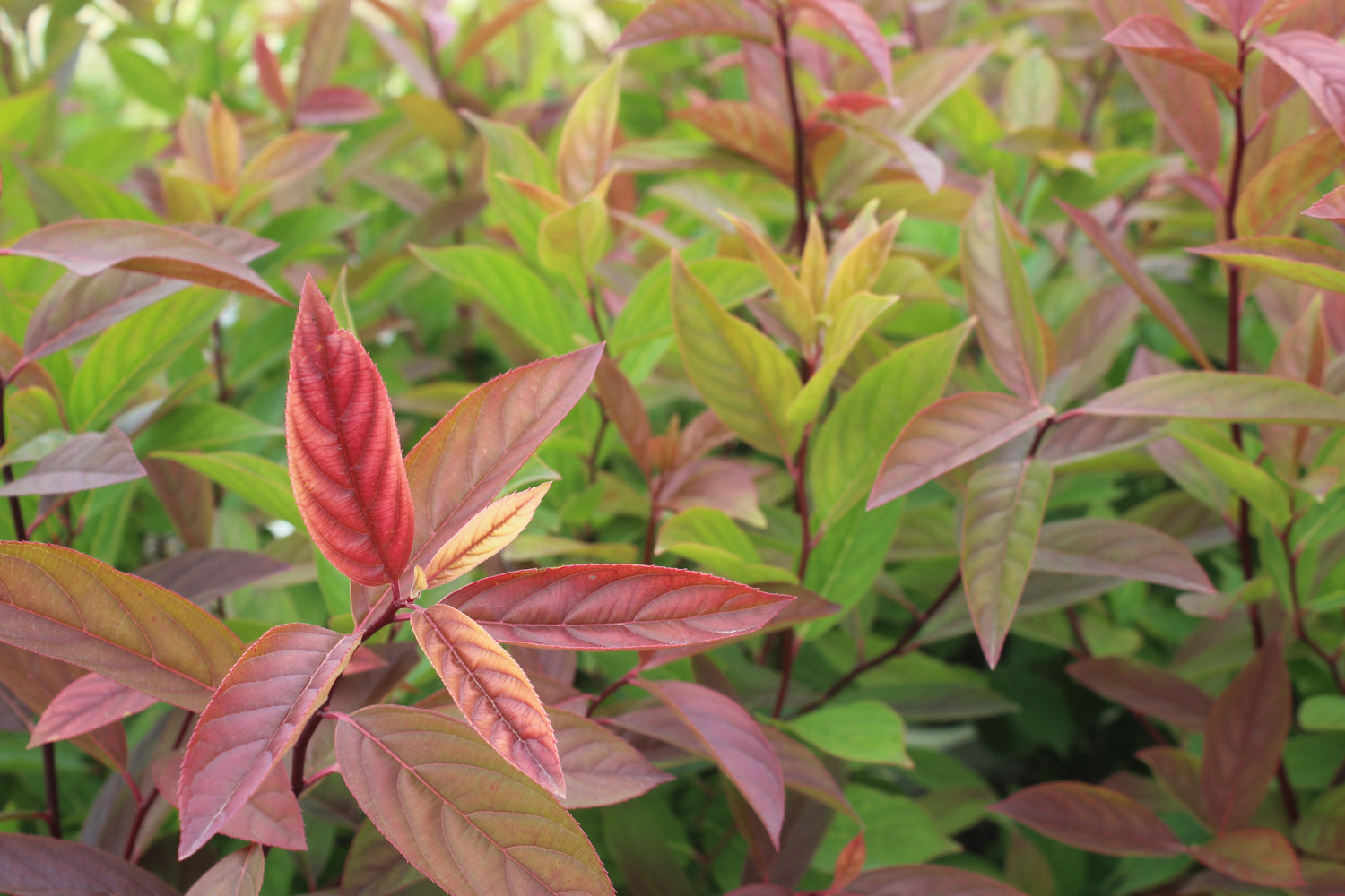 Mounding, compact, round deciduous shrub. Fragrant white flowers in early summer. Green summer foliage changes to a brilliant multitude of oranges and reds in the fall.