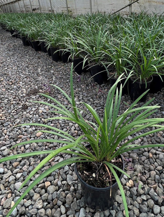 This hardy perennial features a clumping, grass-like habit with arching, strap-shaped foliage that provides year-round interest. Thriving in USDA Zones 5-10, it prefers well-drained soil and tolerates a variety of conditions, including partial shade to full sun. Its vibrant spikes of violet-blue flowers bloom in late summer, followed by small black berries for added visual appeal. Ideal for borders, edging, or as ground cover, it can reach a mature height of 12-15 inches. The foliage transitions to a subtle golden hue in the fall, adding seasonal charm. Heat- and drought-tolerant, it offers moderate deer resistance and is a low-maintenance choice for a variety of landscapes.