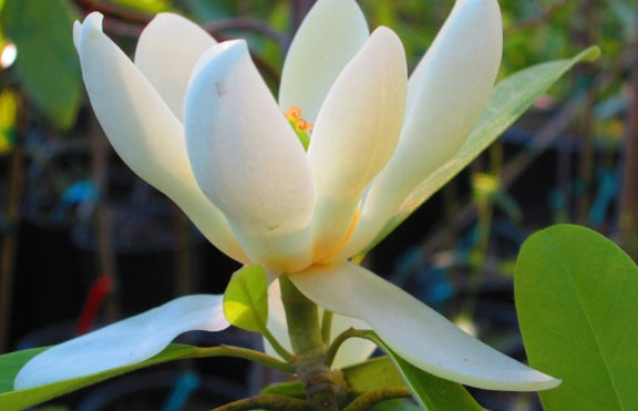 Upright, evergreen broadleaf tree. May be deciduous, but can be evergreen too. Flowers are creamy white, with a lemon scent. Blooms late spring to early fall.
