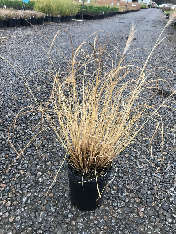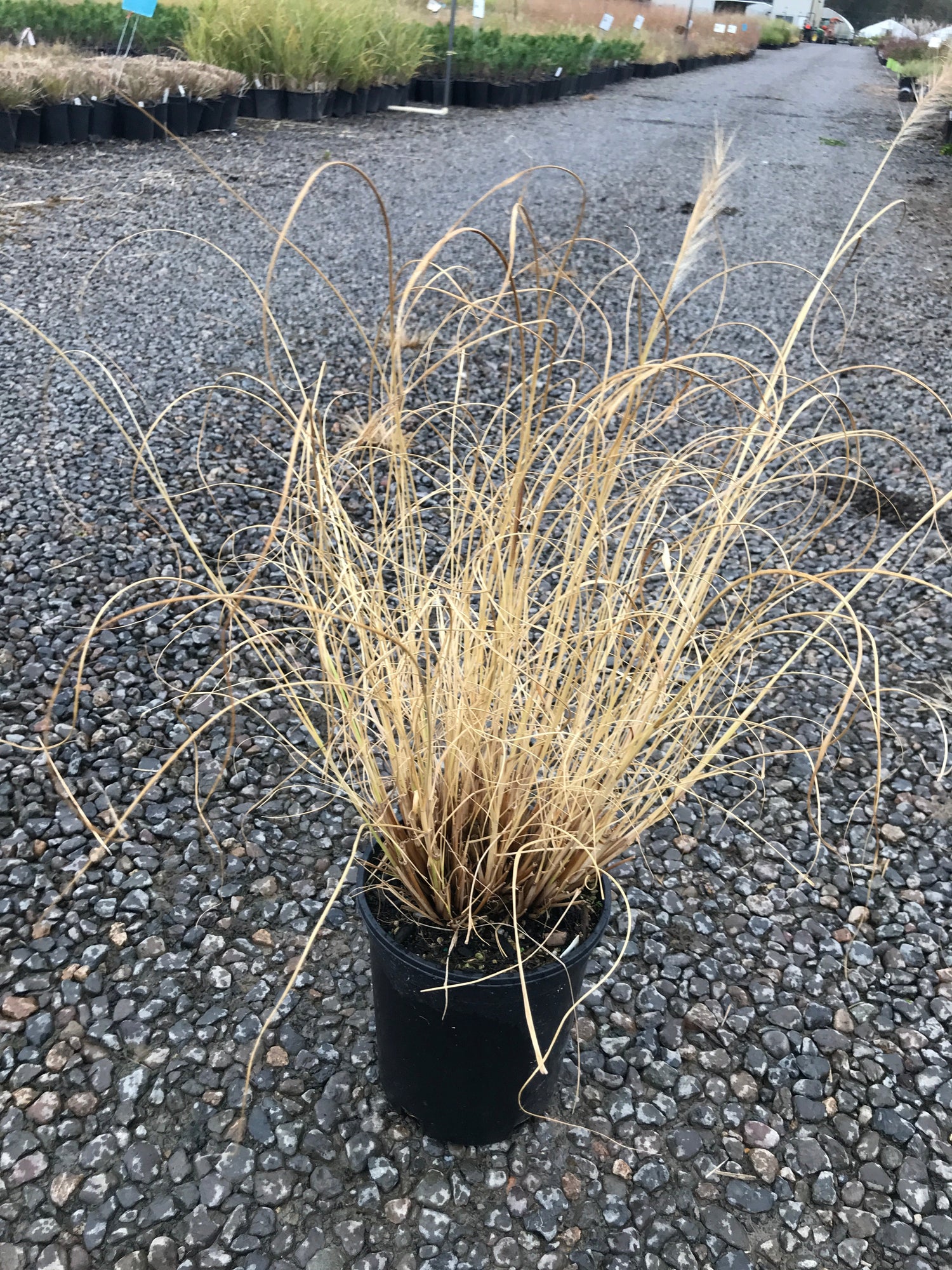 This ornamental grass is a clump-forming perennial known for its graceful, arching habit and soft, bottlebrush-like flower spikes that emerge in late summer, ranging from creamy white to light pink. Recommended for USDA hardiness zones 5-9, it thrives in full to partial sun and prefers well-drained soil with moderate moisture. This low-maintenance grass can tolerate varying temperatures within its zones, making it a versatile landscape choice. In the fall, its narrow green leaves transition to a stunning golden or bronze hue, adding seasonal interest. Deer-resistant and drought-tolerant once established, it typically grows to a height of 2-4 feet and works beautifully as an accent plant, in borders, or massed in landscapes.