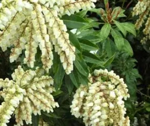 This evergreen shrub features a graceful weeping habit with cascading clusters of delicate white bell-shaped flowers that bloom in early spring. Hardy in zones 5-8, it thrives in cool to moderate temperatures and performs best in partial shade to dappled sunlight. Its foliage transforms to a striking bronze or red in fall before maturing to glossy green, offering year-round interest. Preferring acidic, well-drained soils, it adapts well to woodland gardens and shaded borders. With a mature height of 8-12 feet and a spread of 6-8 feet, it forms a dense, rounded shape, making it an excellent focal point. Known for its deer-resistant qualities, this shrub is a reliable choice for areas with browsing wildlife. No significant fruit is produced, but its elegant floral display and attractive foliage more than compensate.