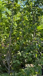 Fall color is brilliant! Leaves usually turn from yellow to orange. Slow growing, upright tree to 30' or more, but tends to stay a multi-trunked shrub around 15' tall. Flowers are borne in Spring,