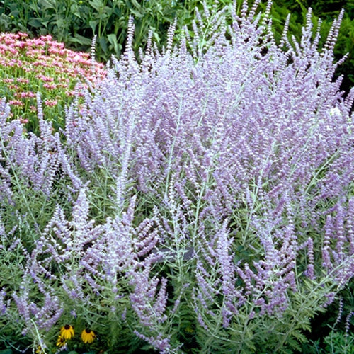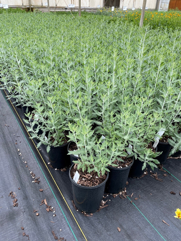 Upright deciduous subshrub to about 4 feet high and 3 feet wide. Hardy to about -10 degrees F. Full sun. Deeply cut silver gray-green leaves. Small tubular, violet blue flowers in late summer. Tolerates well drained poor to moderately fertile soils.