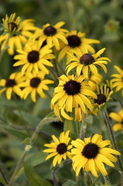 Rudbeckia 'American Gold Rush' PP28498, commonly known as Black-eyed Susan, is a perennial plant known for its vibrant and striking golden-yellow flowers with a prominent dark cone in the center. This plant exhibits a bushy, upright habit, reaching a height of about 24 inches and a spread of up to 40 inches. It thrives in USDA hardiness zones 4 through 9 and is best suited for full sun conditions. 'American Gold Rush' prefers moderate temperatures, ideally between 60-85°F. The plant is renowned for its excellent resistance to diseases such as leaf spot and is moderately deer resistant, making it a durable choice for gardens. Its extended blooming period, from mid-summer to fall, ensures a prolonged display of color in garden landscapes.