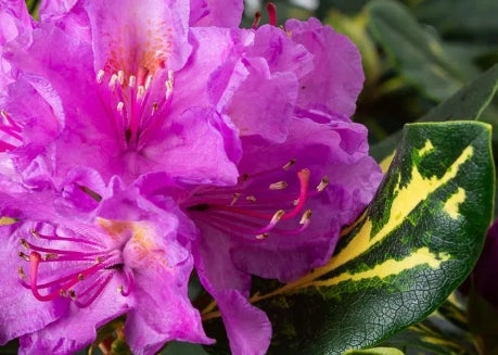 HABIT: evergreen shrub --SIZE: 5'-7' tall --HARDINESS: Hardy to -10* F --EXPOSURE: partial shade --DESCRIPTION: mauve flowers in June. Variegatedfoilage w/ primrose yellow color.