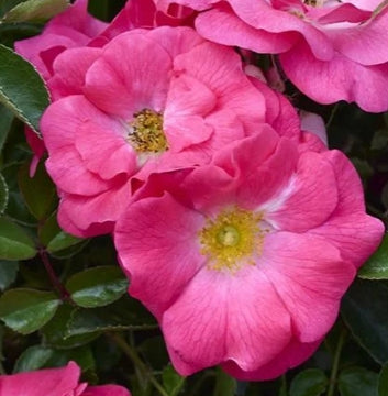 This low-growing, spreading shrub rose boasts a compact, mounding habit, making it ideal for groundcover or borders. Hardy in zones 4-11, it thrives in moderate climates with recommended temperatures ranging from 20°F to 95°F. With deep green, glossy foliage that resists disease and dramatic pink flowers blooming in clusters, it creates a stunning display from spring to fall. Although it does not offer significant fall color or fruit, its long-lasting blooms capture attention throughout the growing season. Preferring well-drained, loamy to sandy soils, it reaches a mature height of 2-3 feet and spreads up to 4 feet. It is moderately deer-resistant, making it an easy and vibrant choice for any landscape.