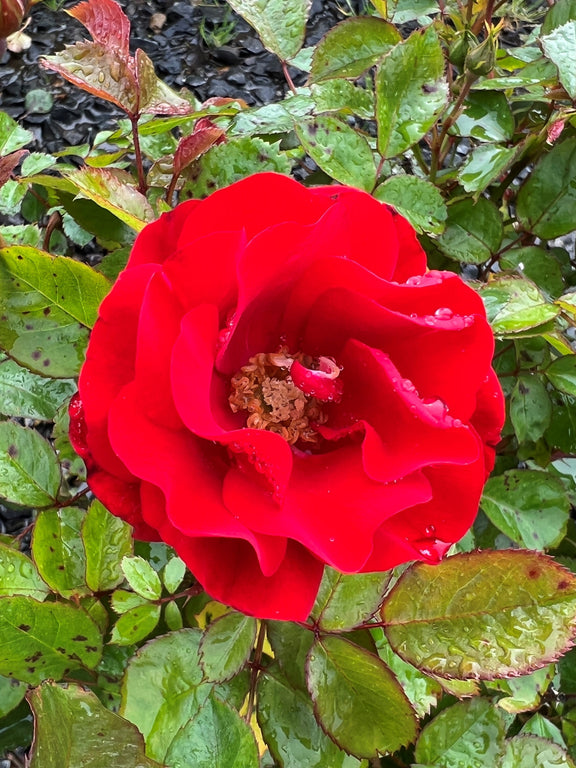 A vigorous tree-form cultivar, this plant displays an upright habit with a tidy, rounded canopy. It thrives in Zones 5-9 and prefers well-drained, slightly acidic to neutral soils. Ideal temperatures range from 65°F to 75°F for optimal growth. Its vibrant red, semi-double flowers create a striking visual impact from late spring to frost, coupled with a light, pleasant fragrance. The glossy green foliage contributes to its long-season beauty and may display slight bronzing in the fall. This plant produces ornamental hips in autumn, adding further seasonal interest. Reaching a mature height of about 5-6 feet, it features moderate deer resistance, making it suitable for mixed borders, gardens, and walkways. A compact, impactful tree form perfect for colorful, vertical accent planting.