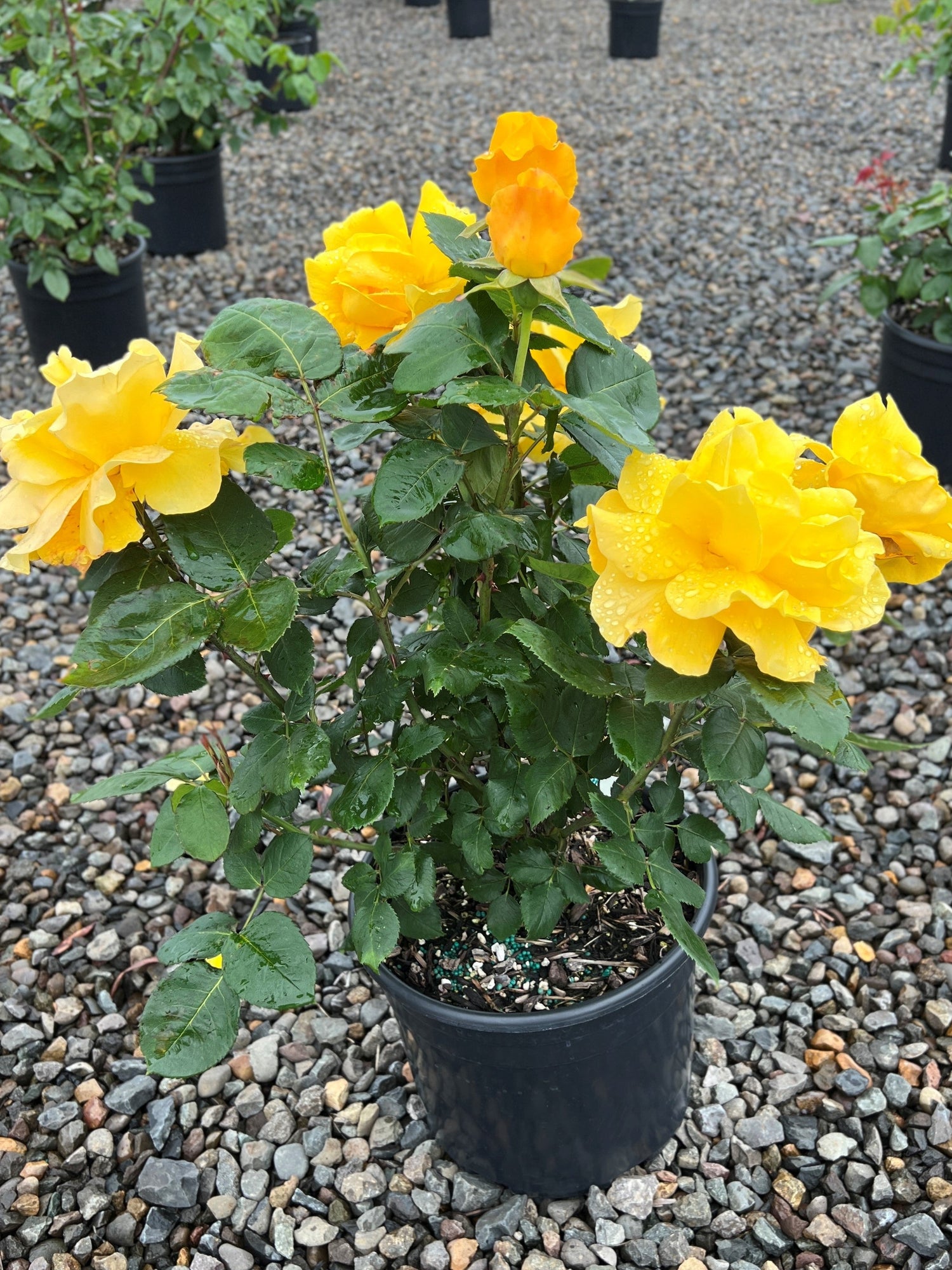 This striking yellow tree-form bloom exhibits an upright and elegant habit, making it a focal point in any garden. Suitable for USDA Hardiness Zones 6-9, it thrives in temperatures above 5°F, preferring full sun and well-drained, fertile soil. Its dazzling yellow flowers are a standout feature, showcasing their brilliance against glossy green foliage, enhanced by a light, sweet fragrance. While it does not have significant fall color, the plant captivates with large, showy blooms throughout the growing season. With a mature height of approximately 36-48 inches in tree form, it has moderate deer resistance, making it a reliable choice for many landscapes. This plant produces no ornamental fruit and adds a touch of luxury with its formal shape, ideal for borders, patios, or focal spots in garden designs.