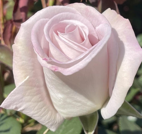 This stunning hybrid tea rose features a classic upright habit, forming an elegant shrub with a mature height of 4-6 feet. Bred for its striking beauty and fragrance, it produces large, exquisite white blooms tinged with soft pink edges, perfect for adding sophistication to garden beds or cutting gardens. Resistant to deer and moderately disease-tolerant, it thrives in USDA hardiness zones 5-9, preferring full sun and rich, well-draining soil. While this rose does not produce notable fruit, its glossy green foliage stays vibrant throughout the growing season, with no significant fall color. Ideal for temperate climates, it performs well in temperatures ranging from 60-80°F. Its graceful form makes it suitable as a focal point or as part of a mixed border.