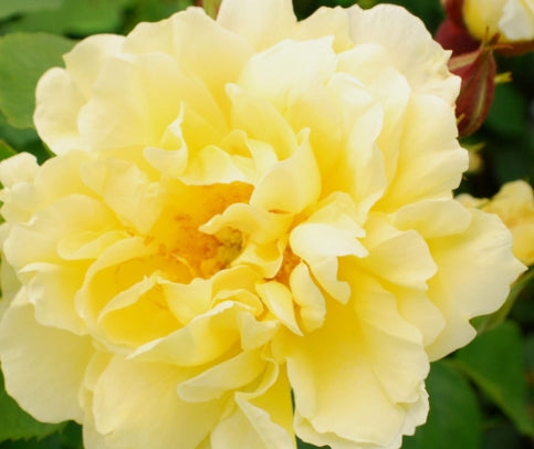 Medium yellow flowers, fading to cream, the colour deepens in cooler weather. Growing lower than the average shrub rose, this variety does not produce hips following bloom but is naturally hardy and highly disease resistant. Its untidy growth is best suited for borders rather than on its own in the bed. Reblooms early summer to frost.