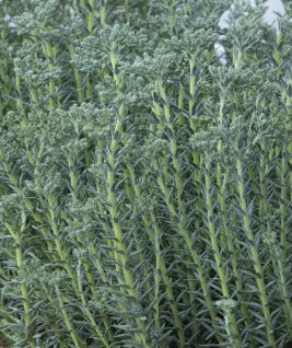 This visually striking succulent is a low-growing, mat-forming plant with needle-like foliage that resembles the blue-green hue of spruce trees, creating a unique, coniferous appearance. It is hardy in Zones 3-9, thriving in well-drained soils and full sun, and can tolerate temperatures down to -40°F. It produces clusters of small, bright yellow flowers in summer, adding a cheerful contrast to its cool-toned leaves. In cooler months, the foliage may develop pinkish tones, giving it mild fall interest. Deer-resistant and drought-tolerant, it is ideal for rock gardens, borders, and ground cover, reaching a height of 4-6 inches and spreading up to 12-18 inches. Its sturdy habit and ability to thrive in poor soils make it a low-maintenance and beautiful addition to any garden.