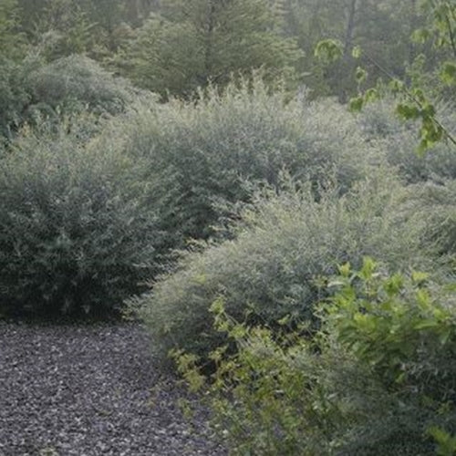 A compact shrub with a refined, rounded habit, this ornamental plant is known for its slender, blue-green foliage that creates a soft, elegant texture in the landscape. Ideal for USDA hardiness zones 4–7, it thrives in cool-temperate climates, tolerating a range of temperatures and conditions. This plant prefers moist, well-drained soils but is adaptable to both sandy and clay soils. It does not exhibit notable fall color, but its violet-tinged stems provide winter interest. Typically growing 3–5 feet in height with an equal spread, it forms a dense, mounded shape that is excellent for borders or hedging. While not a major producer of fruit, its subtle catkins add seasonal charm. It is moderately deer-resistant, offering gardeners a low-maintenance option for creating visual interest in their landscapes.