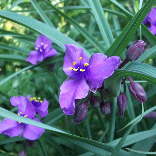Tradescantia 'Concord Grape' is a hardy, perennial plant known for its sprawling habit, making it an excellent ground cover or cascading addition to hanging baskets. It thrives best in USDA hardiness zones 9 through 11 and prefers mild temperatures, avoiding prolonged cold or frost. The plant showcases vivid grape-purple foliage that adds a pop of color to any garden space. Although it does not produce flowers, its foliage is the main attraction. Tradescantia 'Concord Grape' grows to a moderate height of 6 to 12 inches and is relatively deer resistant. This plant's vibrant leaves make it a striking choice for adding texture and color contrast to mixed containers and garden beds.