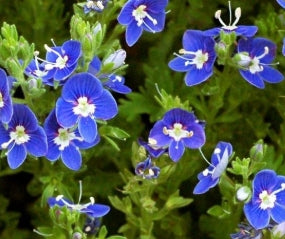 Brilliant blue blooms with white centers. Silvery green trailing foliage. Excellent along the border, rock gardens or as a groundcover. Drought tolerant once established.