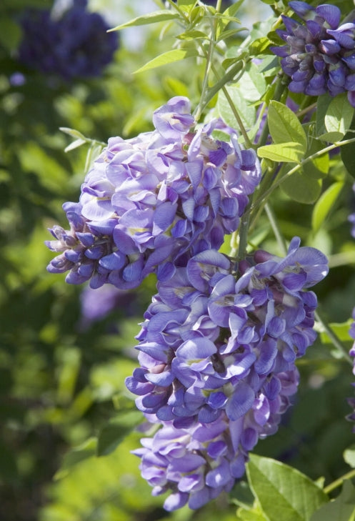 This stunning ornamental vine boasts a compact, deciduous habit and is ideal for trellises, arbors, and fences. Hardy in zones 5–9, it thrives in moderate temperatures and full sun to partial shade. 'Amethyst Falls' produces cascading clusters of fragrant, lavender-purple flowers in late spring and early summer, adding vibrant color to the landscape. The vine can reach a height of 15–25 feet, making it a versatile choice for garden spaces. It prefers well-drained soil enriched with organic matter for optimal growth and is moderately deer-resistant. Fall foliage transitions to subtle yellow hues. Despite its robust size, it offers a manageable weight and lush form, enhancing privacy and visual interest in any outdoor setting.