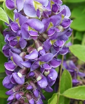 A vigorous and stunning deciduous vine with twining growth habit, this plant showcases cascading racemes of fragrant, violet-purple flowers in spring, creating a dramatic display. Recommended for hardiness in USDA Zones 5-9, it thrives in moderate temperatures and requires full sun exposure for optimal bloom. Foliage turns a delicate yellow in fall, adding autumnal interest to the landscape. It prefers moist, well-drained, fertile soil and is moderately deer resistant. Mature height can reach as high as 30 feet, with support, making it ideal for arbors, pergolas, or trellises. This plant produces no significant fruit but serves as a pollinator magnet, adding vibrant beauty and ecological benefits to any garden.