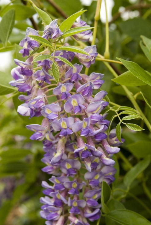 A vigorous, deciduous climbing vine, this plant showcases cascades of fragrant, lavender-blue flowers in late spring and reblooms up to three times throughout the summer. It thrives well in USDA hardiness zones 4-9 and prefers full sun for optimum flowering, though it can tolerate partial shade. This twining vine can reach a mature height of 15-25 feet with proper support and forms a beautiful, cascading habit. Adaptable to a variety of well-draining soils, it performs best in moist, moderately fertile conditions. Its foliage transitions to a soft yellow in fall, adding seasonal interest. While not highly deer resistant, it is a wonderful choice for covering arbors, fences, and pergolas. Ensure a sturdy structure for its weight and enjoy its stunning floral displays year after year.